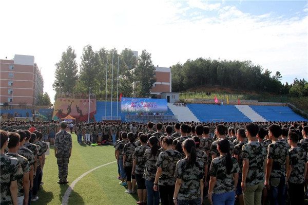 愉快而充實(shí)的軍訓(xùn)生活很快就過(guò)去了。8月20日下午,南實(shí)的天空格外蔚藍(lán),為期4天的軍訓(xùn)生活即將結(jié)束。5點(diǎn),軍訓(xùn)匯報(bào)表演正式開始。3000多名學(xué)生穿著統(tǒng)一的迷彩服服裝,排著整齊的方隊(duì),精神飽滿地進(jìn)入會(huì)操現(xiàn)場(chǎng),接受校長(zhǎng)檢閱。19班的同學(xué)進(jìn)行了隊(duì)列表演,13班的同學(xué)進(jìn)行了軍體拳和擒敵拳表演,優(yōu)秀女學(xué)員還進(jìn)行了“三聲”、“三相”表演。在部隊(duì)和學(xué)校領(lǐng)導(dǎo)、班主任的注視和期待下,在全體教官的悉心指導(dǎo)下,經(jīng)過(guò)四天軍訓(xùn)生活的艱苦磨練,同學(xué)們洋溢著青春的光彩,滿懷信心、步伐堅(jiān)定、整齊劃一地步入表演場(chǎng)地,喊著響亮的口號(hào),熟練地做著規(guī)定的動(dòng)作,震憾人心,贏得陣陣喝采和掌聲。在表演過(guò)程中,補(bǔ)習(xí)2016屆全體新生用颯爽的身姿、抖擻的精神向?qū)W校領(lǐng)導(dǎo)、老師以及承訓(xùn)教官們交上了完美的答卷,也為他們自己的軍訓(xùn)之旅畫上完滿的句號(hào)。會(huì)議還對(duì)優(yōu)秀學(xué)員和優(yōu)秀集體進(jìn)行了表彰。