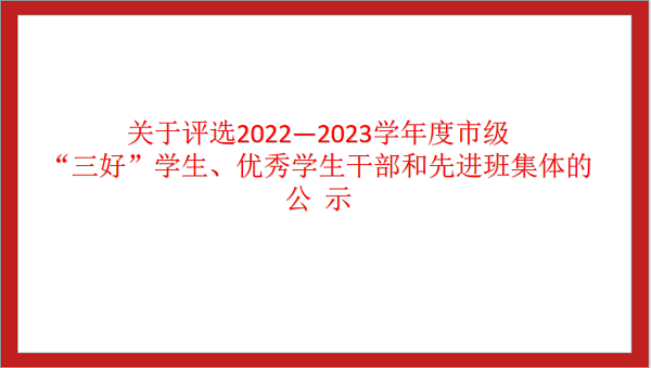 關(guān)于評(píng)選2022—2023學(xué)年度市級(jí) “三好”學(xué)生、優(yōu)秀學(xué)生干部和先進(jìn)班集體的公示