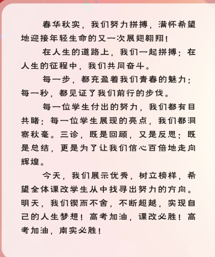 南山實(shí)驗(yàn)課改年級(jí)高2019級(jí)三診表彰大會(huì)