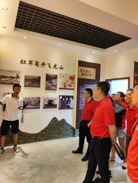 在講解員的帶領(lǐng)下,沿著紅軍路,黨員們來到紀(jì)念館,在這里聆聽了中國工農(nóng)紅軍第四軍在此處的紅色革命硝煙故事,黨員們深入館內(nèi),感受了當(dāng)時(shí)紅軍們艱苦的生存環(huán)境。