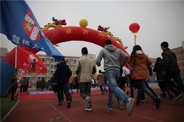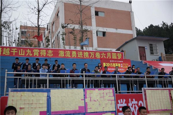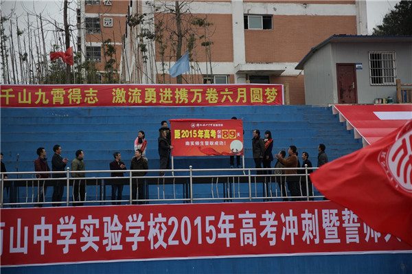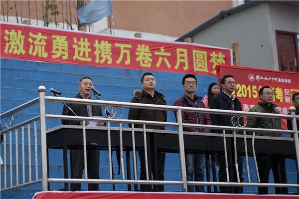 最后,在教師方陣的帶領(lǐng)下,伴隨著《邁向考場(chǎng)》的振奮音樂,全體同學(xué)以班級(jí)的形式接連沖向通往2015年高考大捷的“成功之門”。至此,本次高考沖刺誓師大會(huì)圓滿落幕。